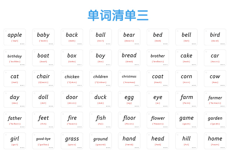 儿童英语单词卡片 早教卡闪卡 小学启蒙