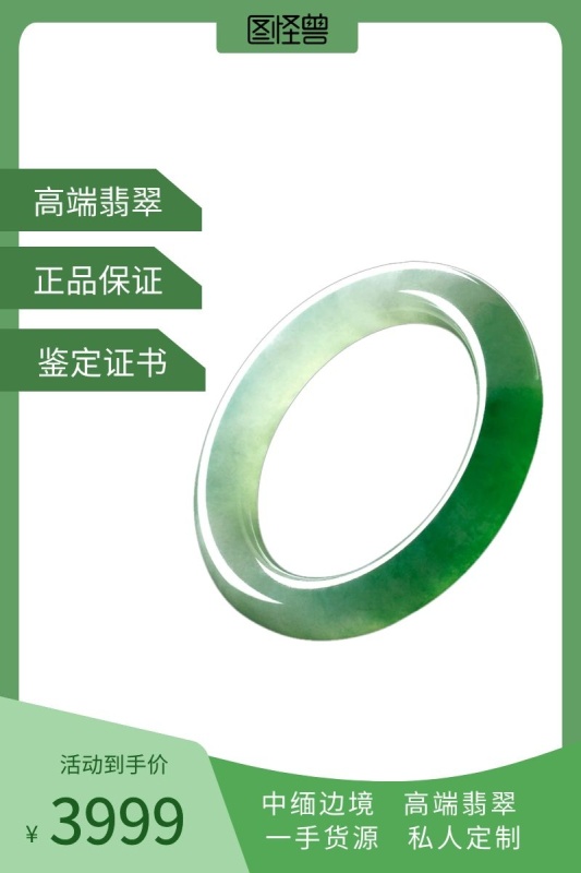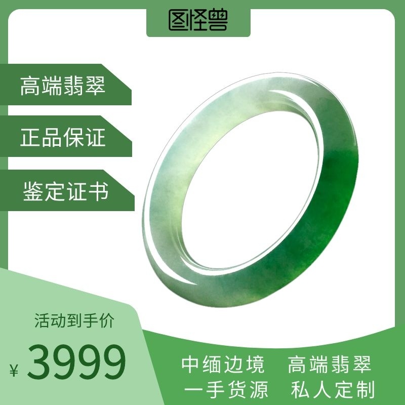 缅甸翡翠正品淘宝活动绿白简约直通车