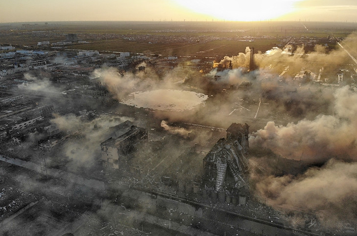 航拍江苏响水化工厂爆炸事故现场