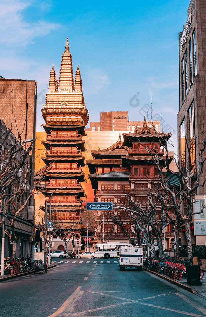 金光闪烁上海静安寺摄影图片