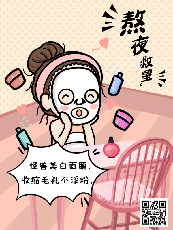 熬夜党救星美白面膜卡通漫画海报