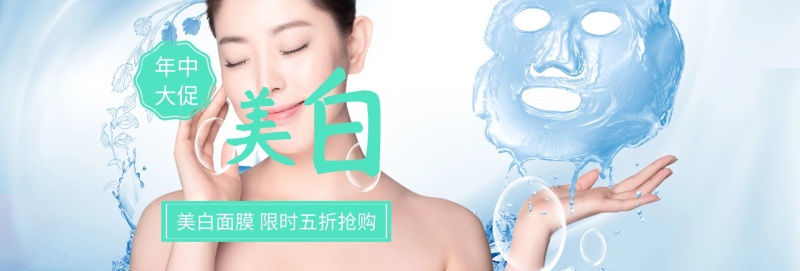 美白面膜护肤年中大促banner图片