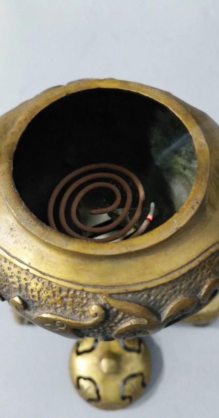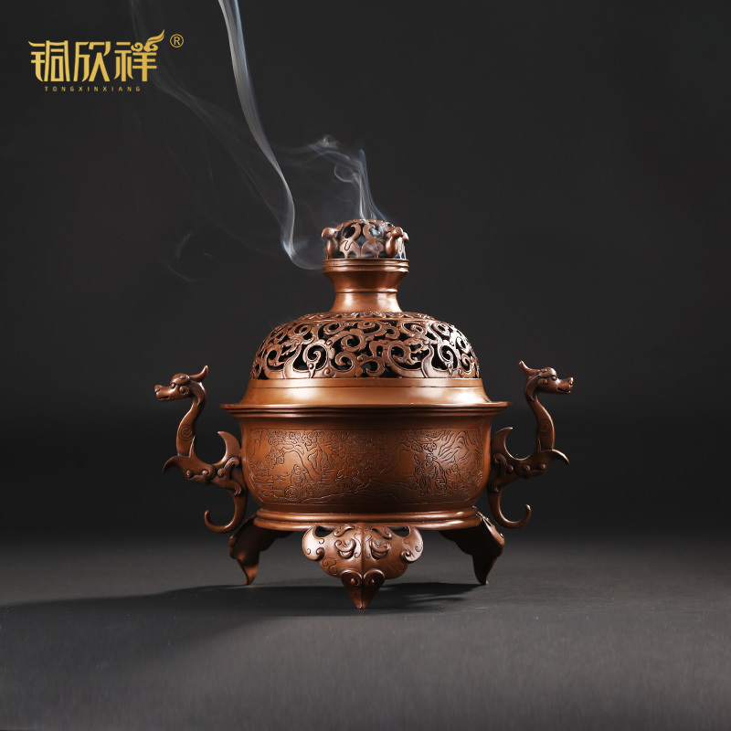 紫铜仿古朱雀纹熏香炉摆件佛教家用三足