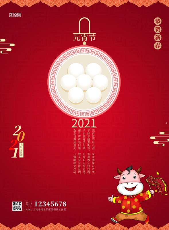 元宵节红色灯笼创意大气海报PSD模板