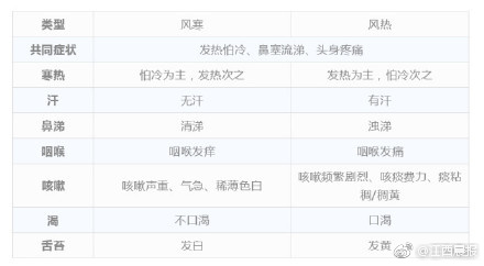 风寒感冒VS风热感冒,一张表教你辨别