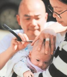 孩子剃胎毛 家长开车寻找剃头匠