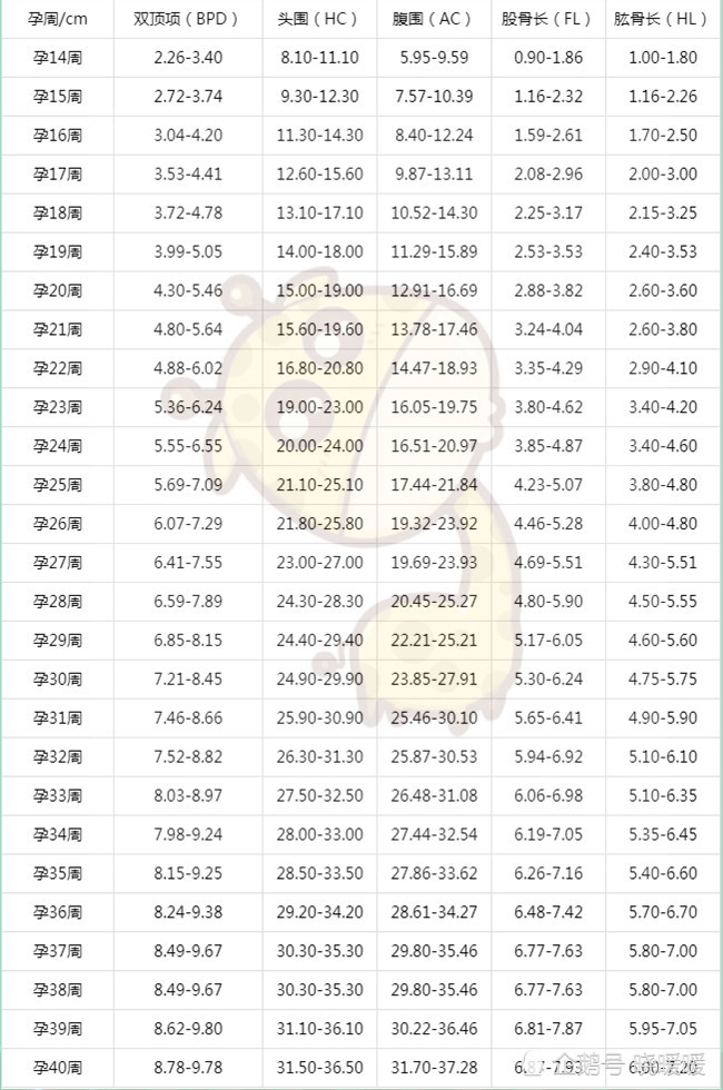 孕期怎么看懂胎儿大小,双顶径,股骨长,头围和腹围?(附对照表)