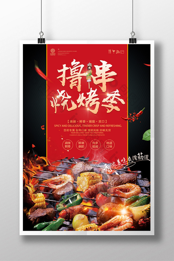 撸串烧烤啤酒节夜市大排档美食餐饮文化海报