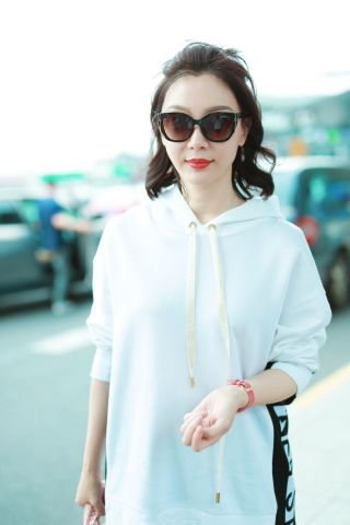 陈数穿白色连帽卫衣搭配黑色牛仔裤现身