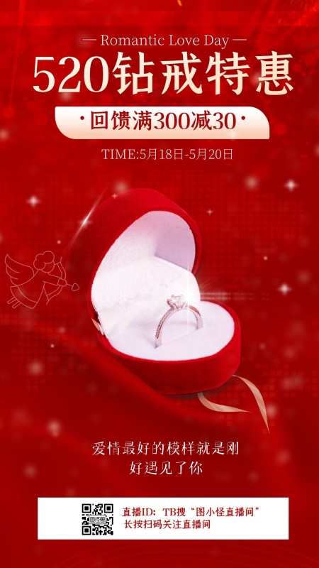 电商红色婚戒520情人节促销直播海报