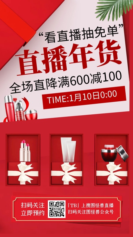 电商C4D美妆化妆品年货节直播海报