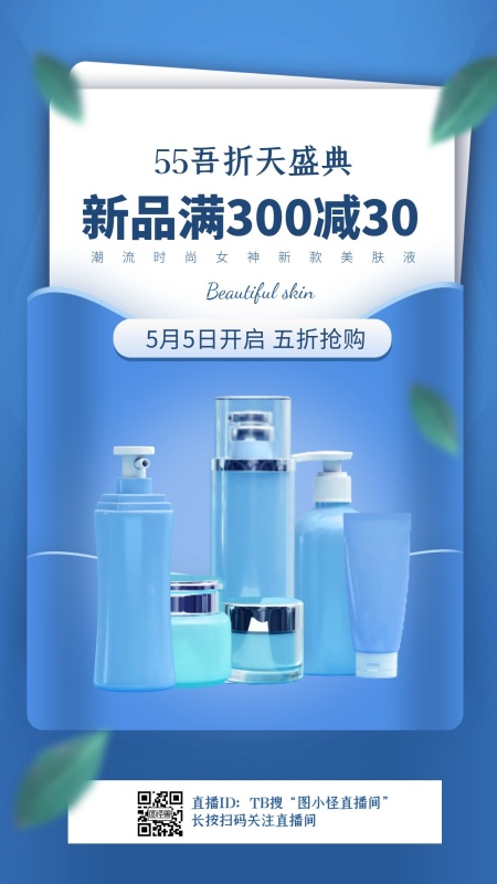电商55吾折天化妆品促销直播海报