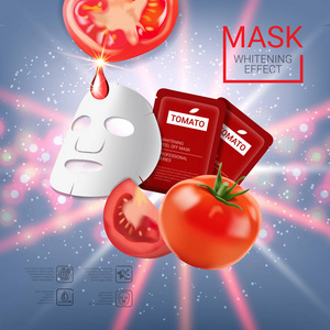 番茄皮肤护理面膜广告。矢量图和西红柿