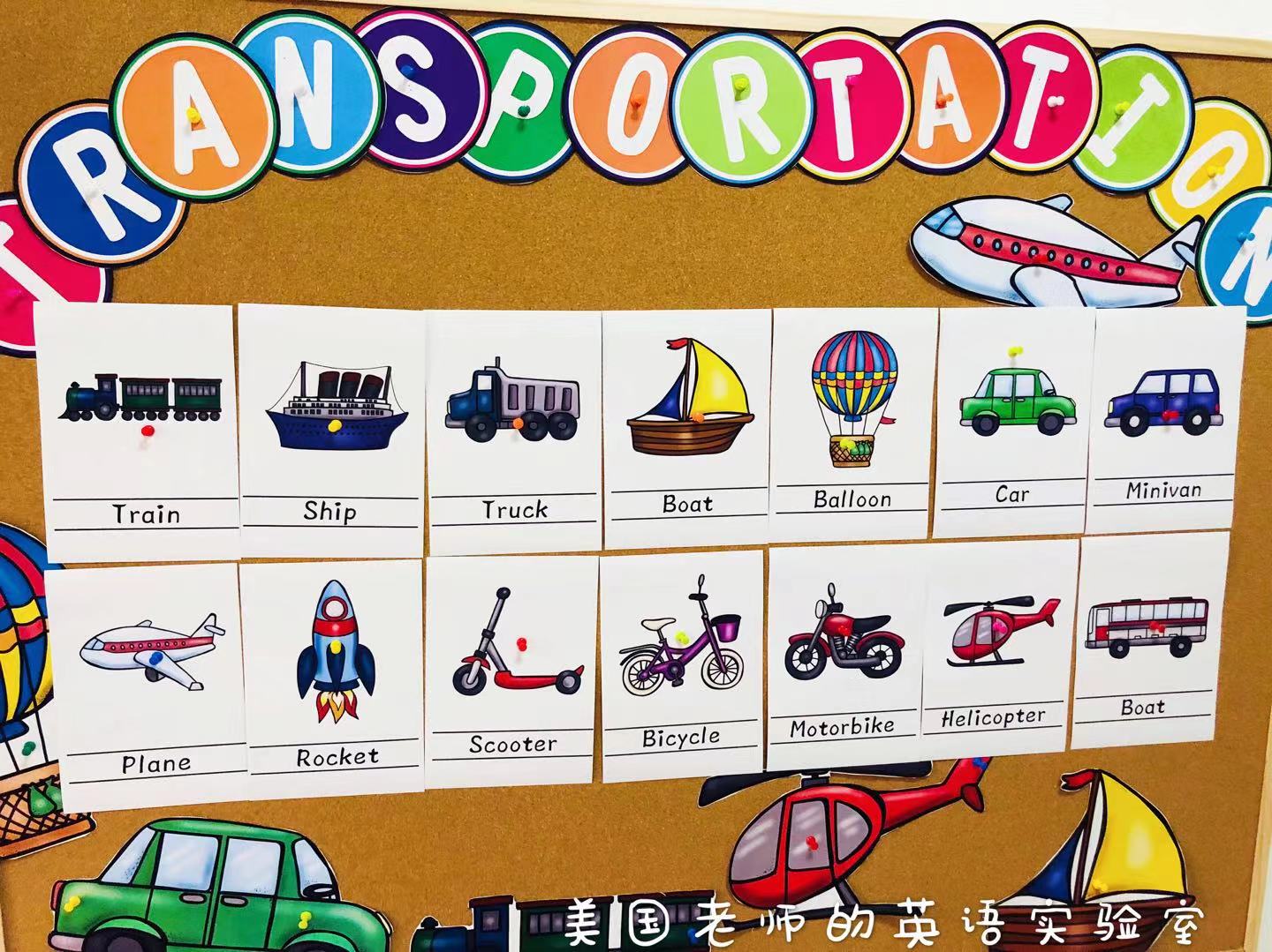 transportation交通工具英文卡片主题墙装饰亲子早教英语教师教具