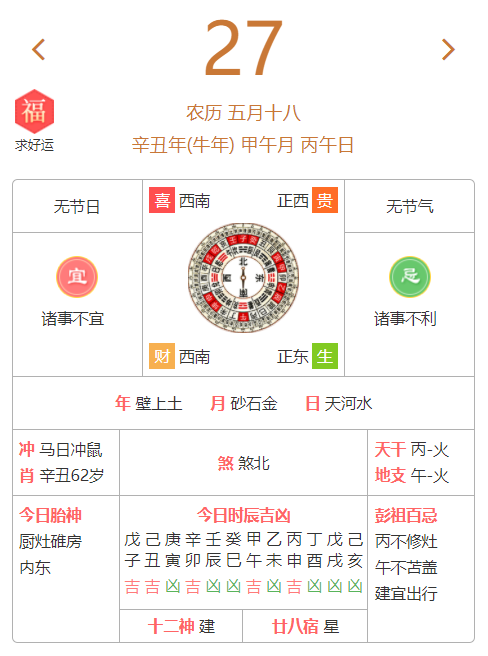 6月27日黄历宜忌,诸事不宜。