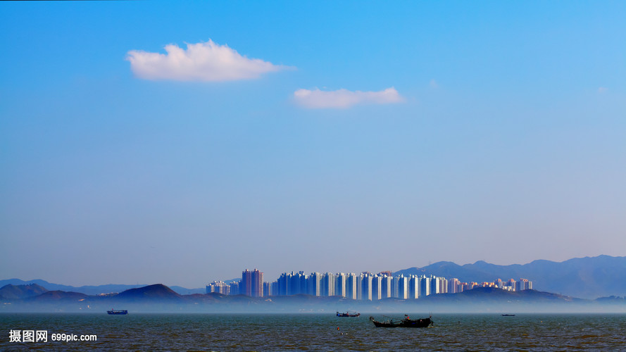 蓝天白云深圳湾眺望香港