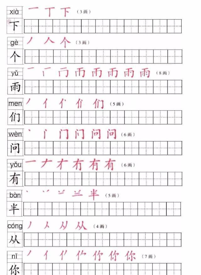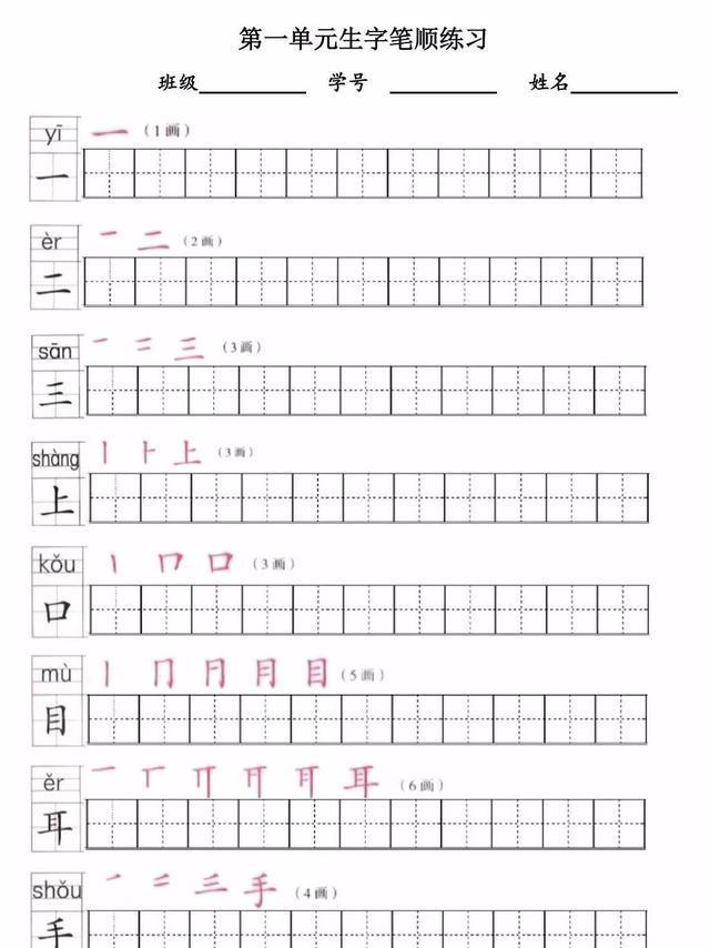 一年级上册全册写字表笔顺练习, 让孩子在起跑线就赢!