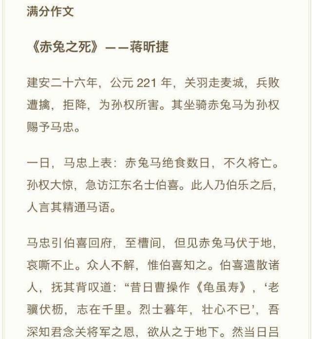 高考满分作文第一人:蒋昕捷《赤兔之死》