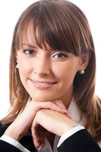 微笑被隔绝在白色背景上做生意的女人肖像