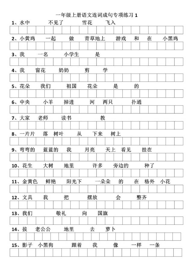 专注小学语文教育,一年级语文连词成句练习