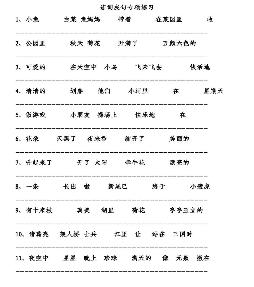小学低年级连词成句练习,附连词成句秘诀