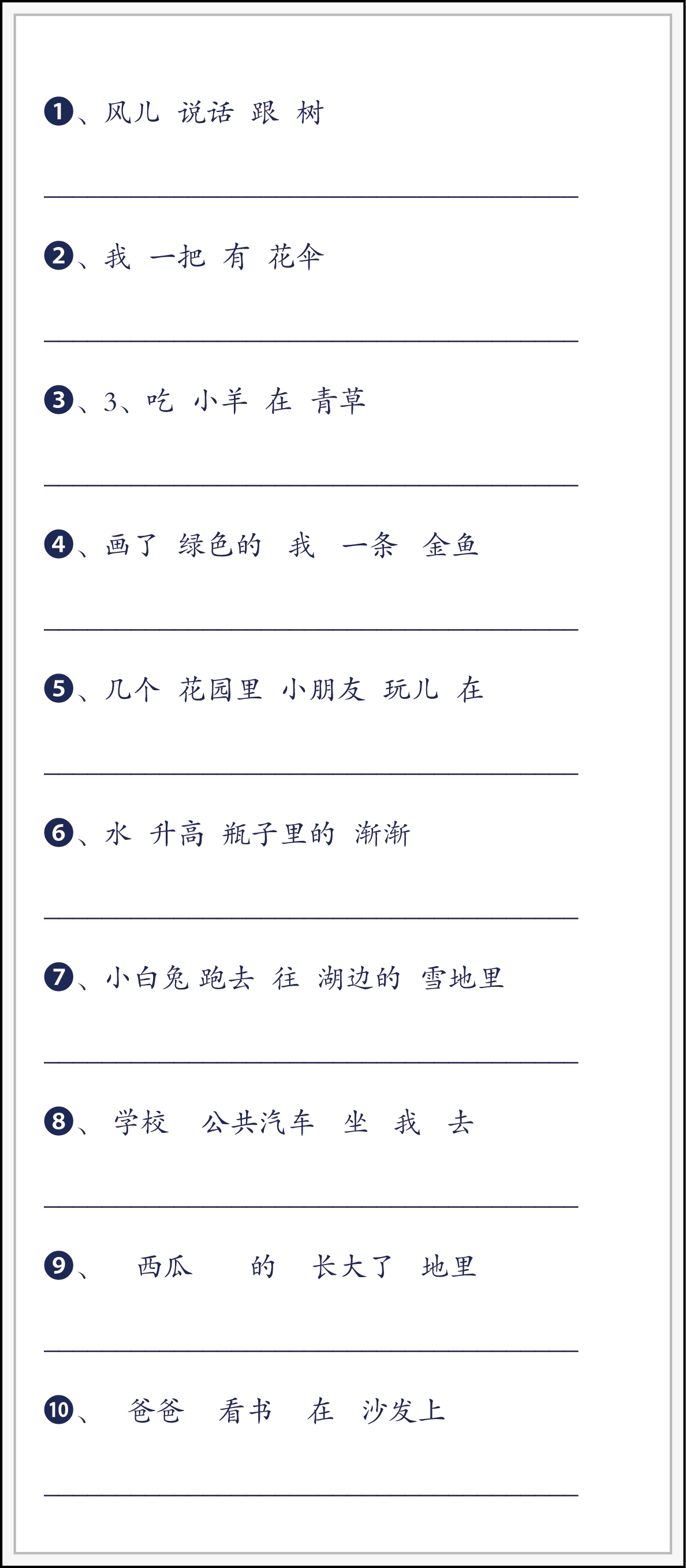 小学二年级排列句子连词成句综合练习题