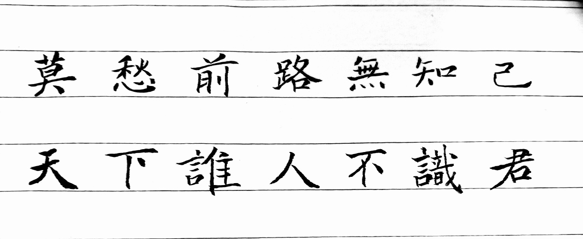 莫愁前路无知己天下谁人不识君手写字体