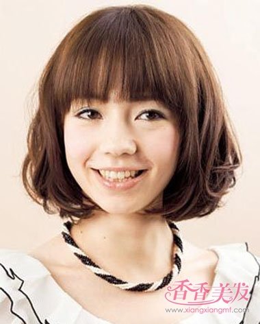[新发型]圆脸女生适合的齐刘海卷发发型