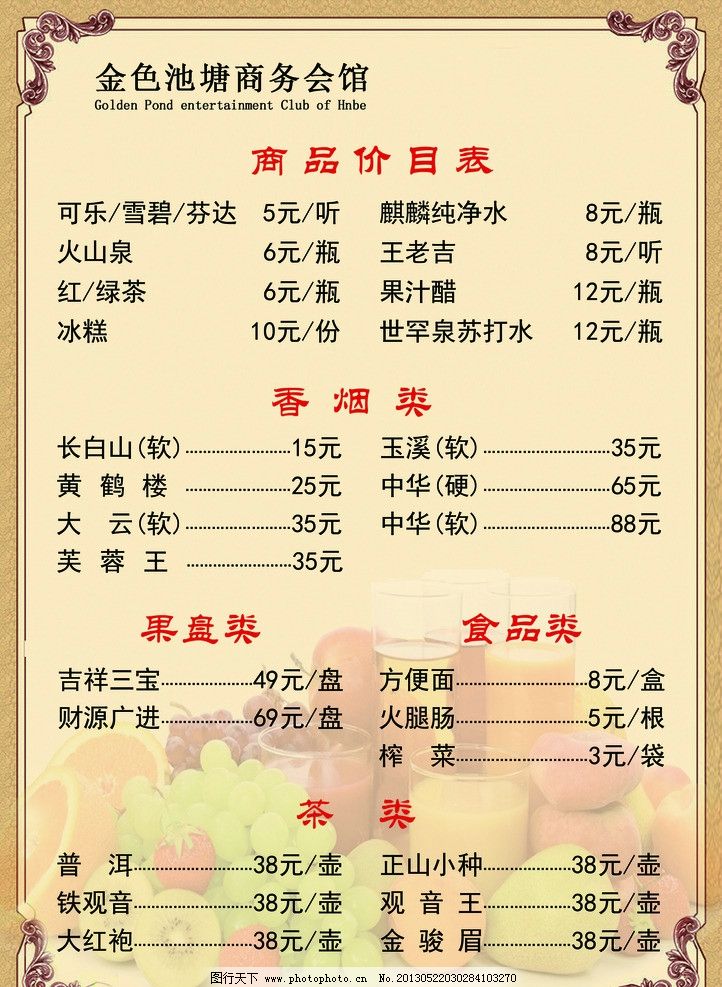 价格表图片