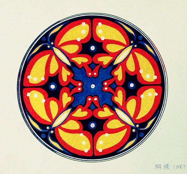 高中时的图案作业,适合纹样:牵牛花与蝴蝶。是水粉画。