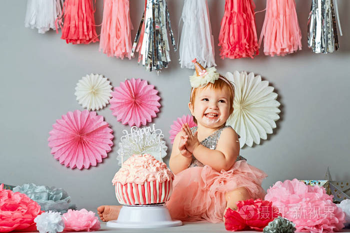 婴儿男孩的第一个生日蛋糕砸砸蛋糕可爱的