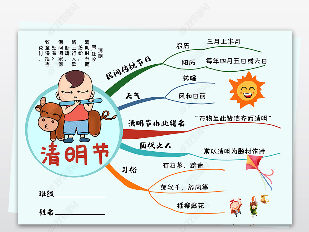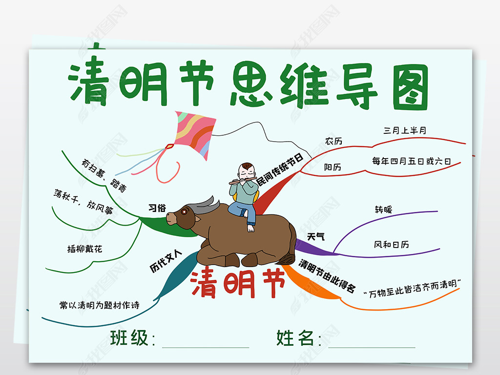 4月5日清明节思维导图传统习俗手抄报小报图片模板下载