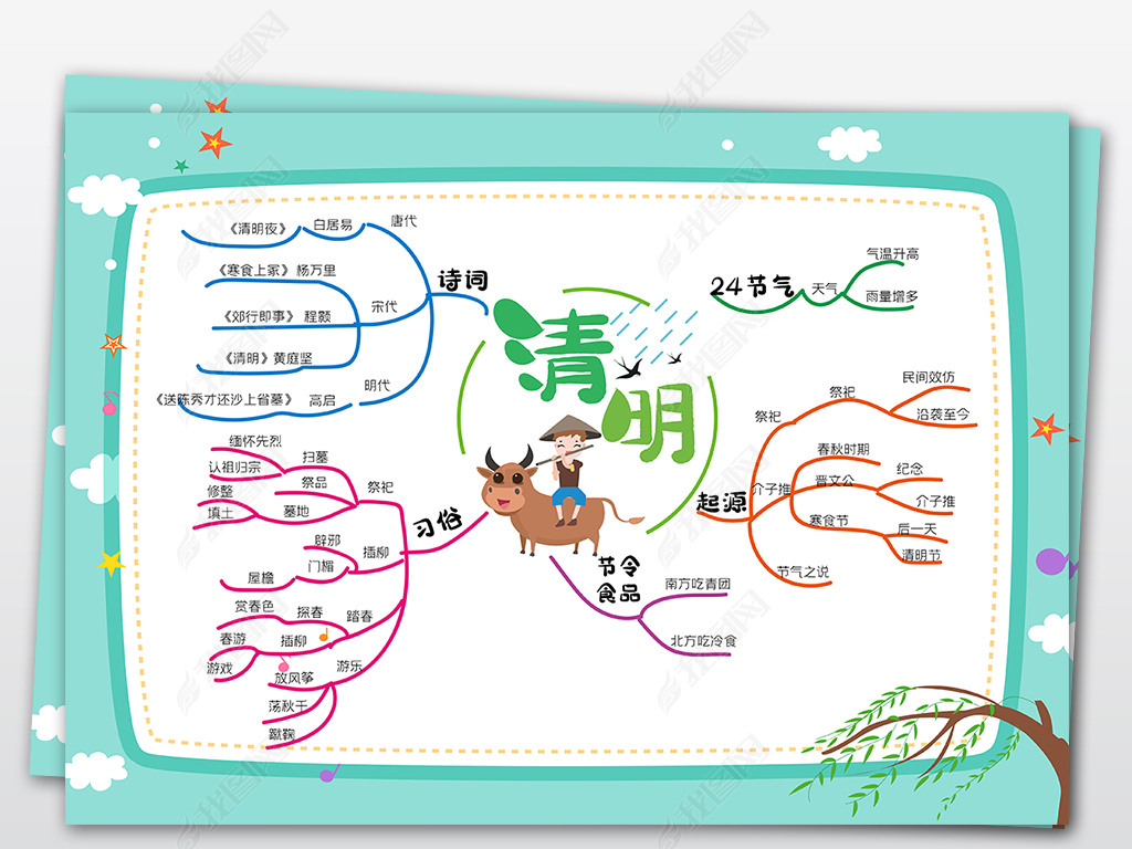 清明节思维导图清明节小报踏青扫墓手抄报传统节日电子小报