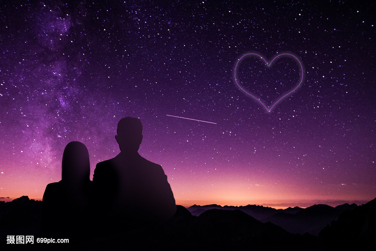 唯美清新节日七夕情人节甜蜜情侣看流星