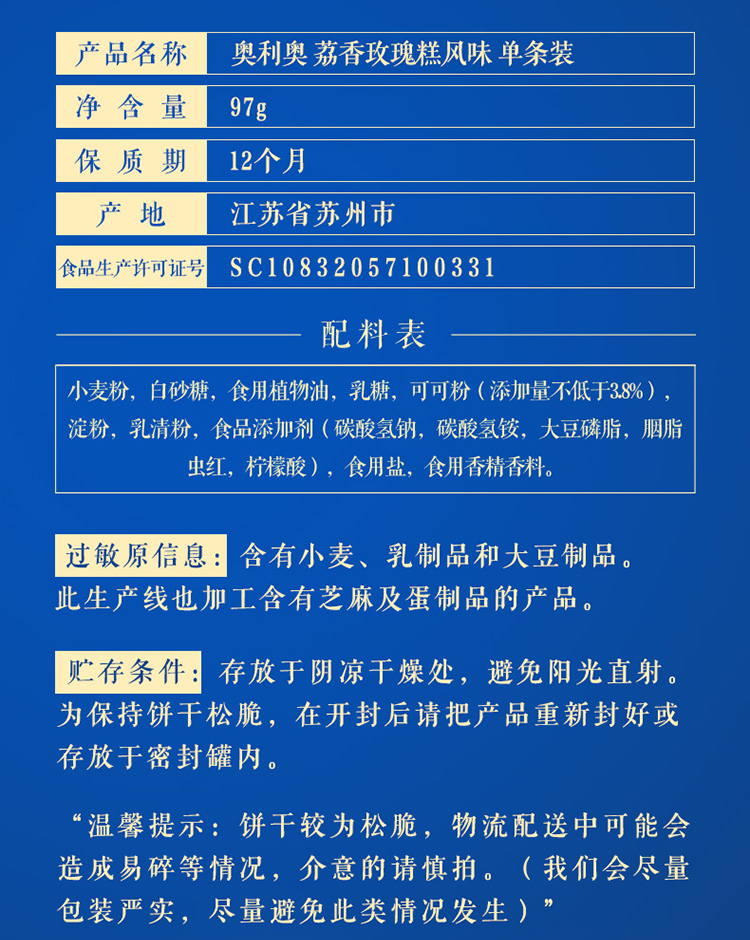 产品名称奥利奥荔香玫瑰糕风味单条装净含量