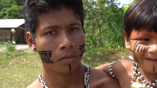父亲和儿子在亚马逊土著部落