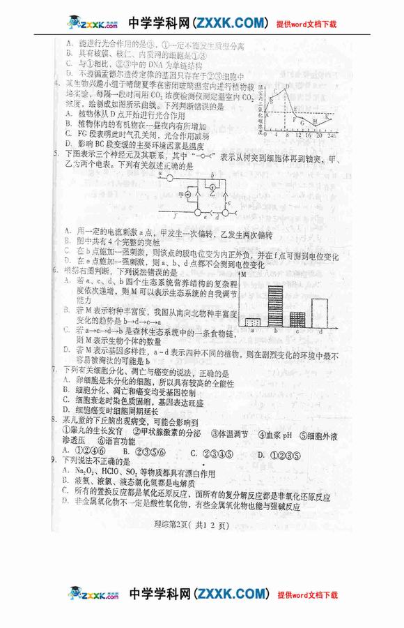 曲师大附中09届四月质检-理综 (2)--人民网