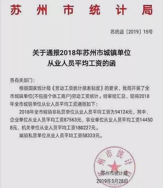 江苏苏州市公务员平均月薪1.5万?市统计局: