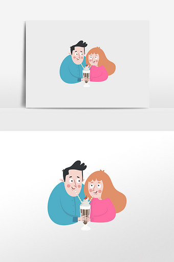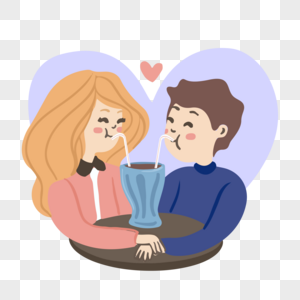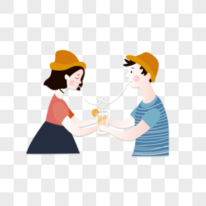 情侣喝果汁插画
