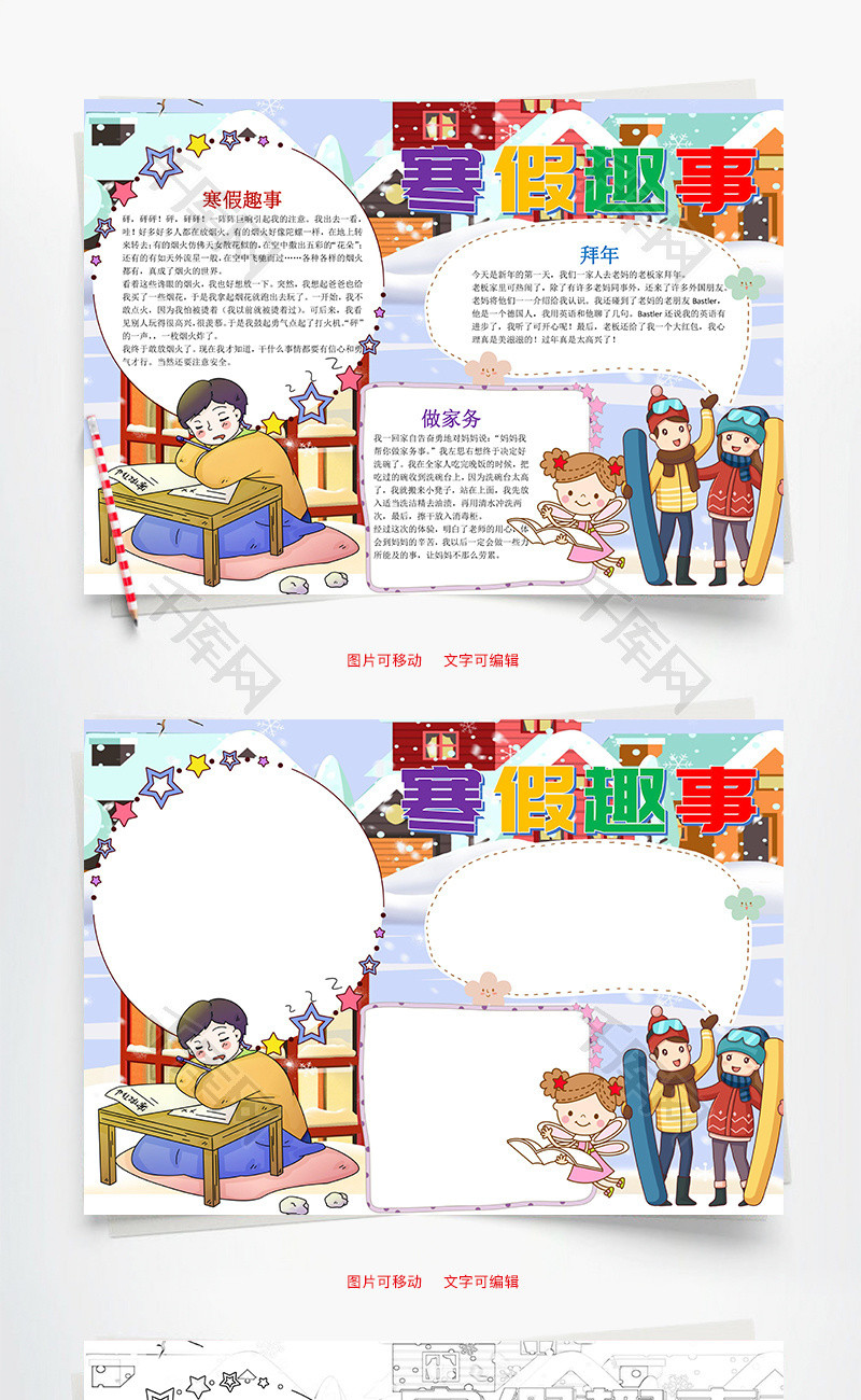 可爱儿童风寒假趣事小报word手抄报_千库网(手抄报ID:97716)