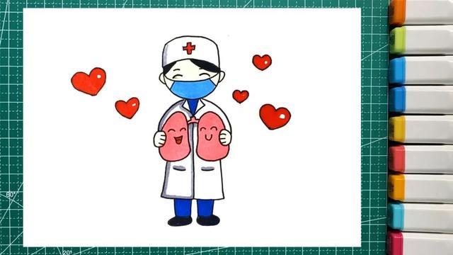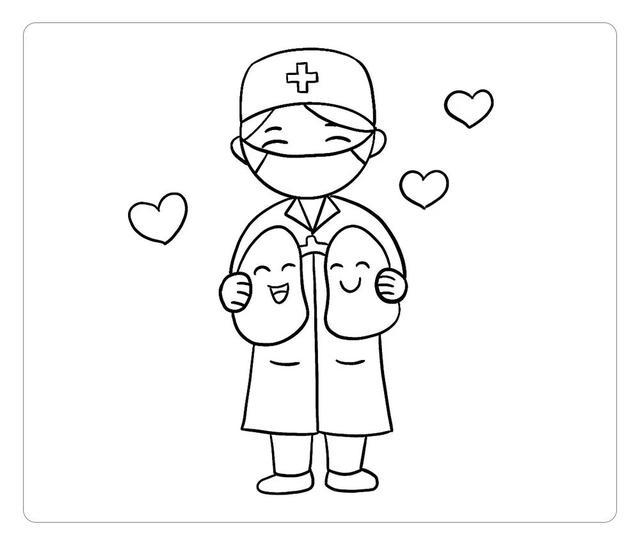 一幅温馨的医生创意简笔画,致敬白衣战士