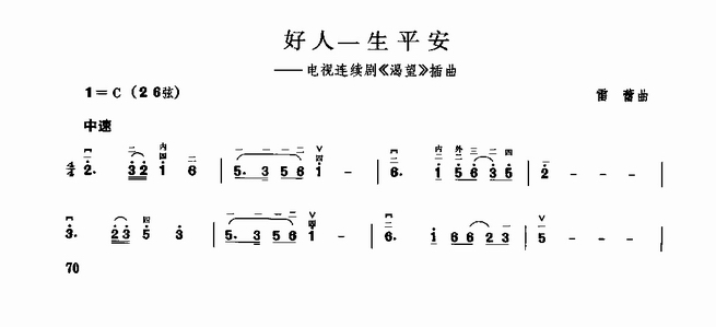 口琴简谱与五线谱对照乐谱《好人一生平安