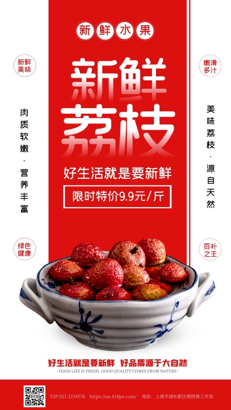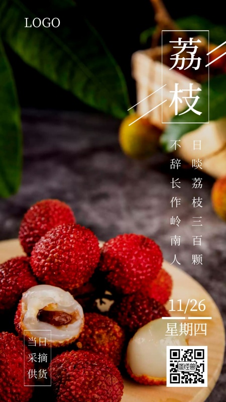 夏日鲜果荔枝促销手机海报