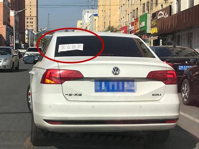 新手女司机担心被追尾,在车后贴了张纸,老司机看见就赶紧躲开