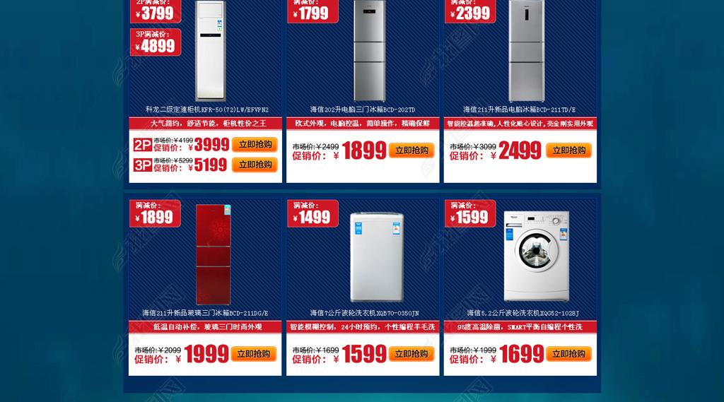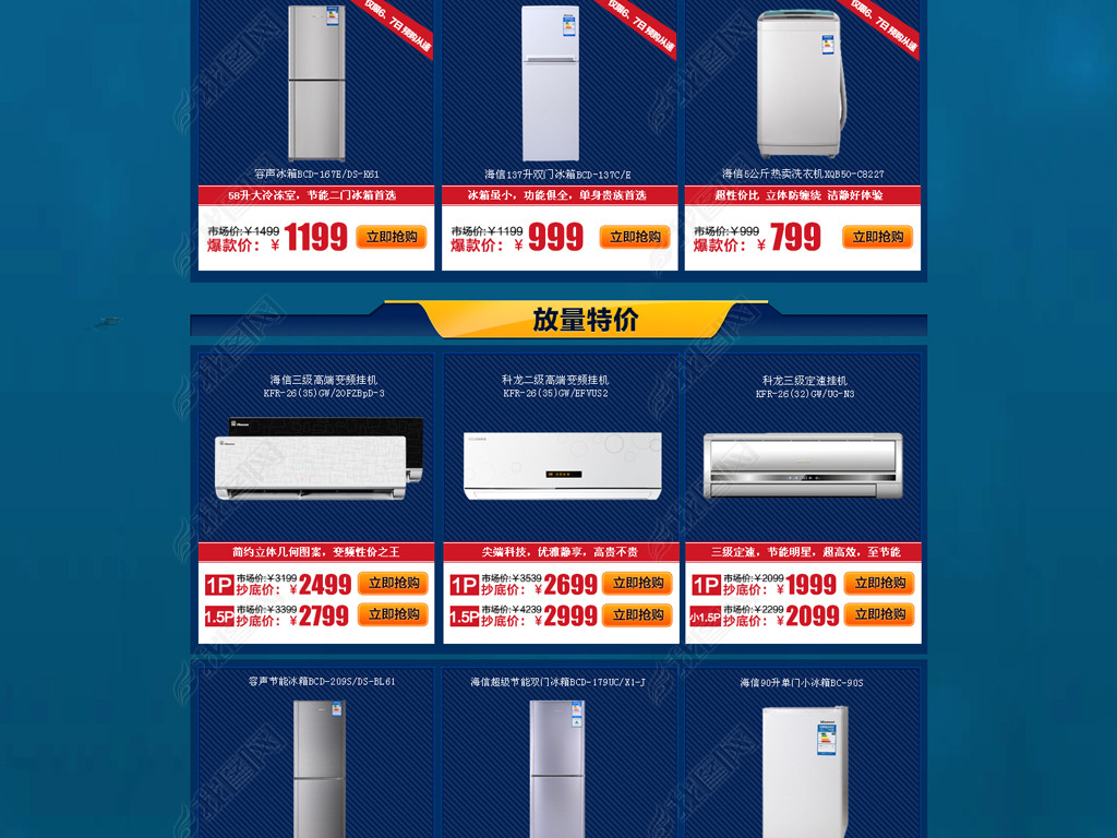 海信品牌日电器首页夏季蓝色清爽冰岛电冰箱