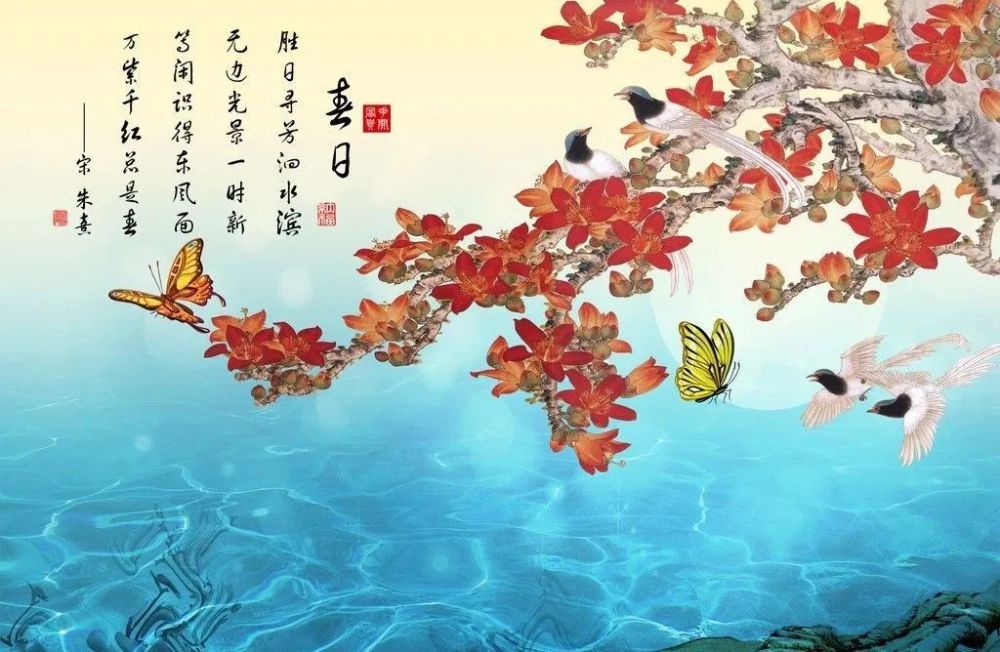 春日古诗配画电子手抄报模板及图片_春日手抄报图片