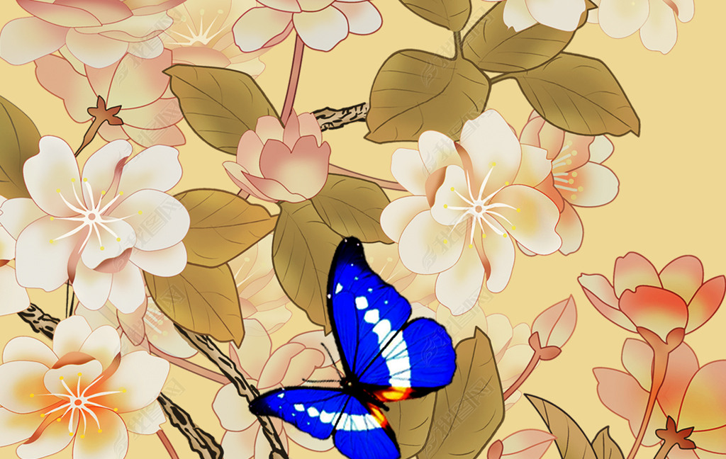忆江南玉兰房子蝴蝶树枝诗句电视背景墙