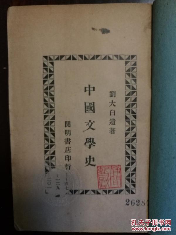 中国文学史 刘大白_刘大白_孔夫子旧书网