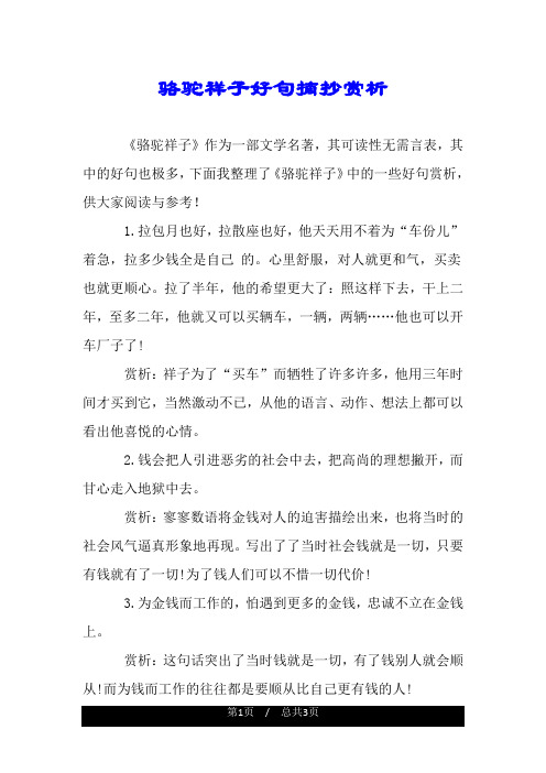 【骆驼祥子好词好句好段赏析】骆驼祥子好