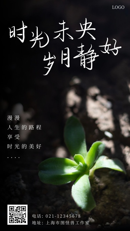 时光未央 岁月静好黑色简约手机海报